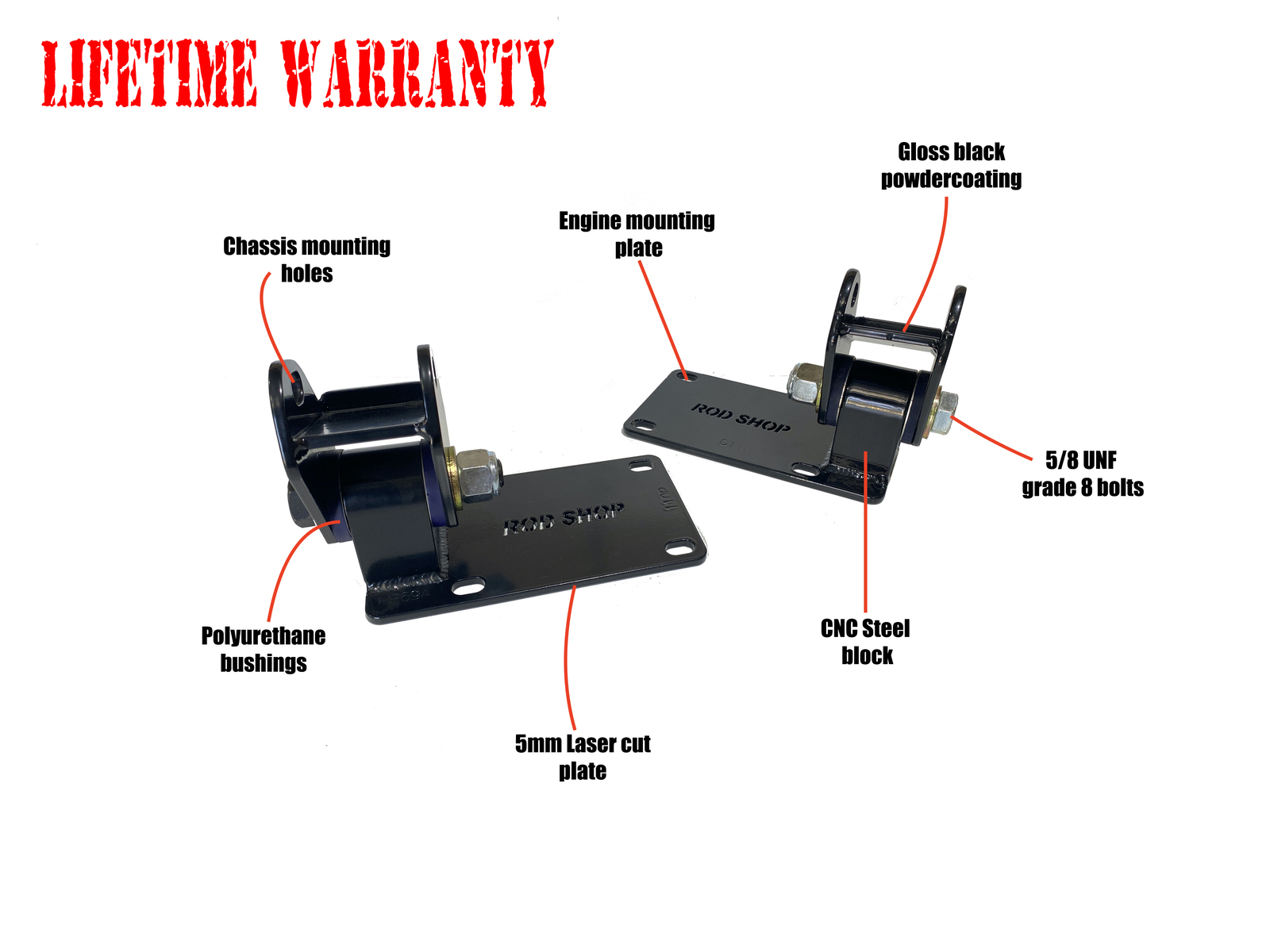 Heavy Duty Engine Mounts for Nissan RB Engines into FE, FC, FB, EK, EJ, EH, HD, HR Holdens