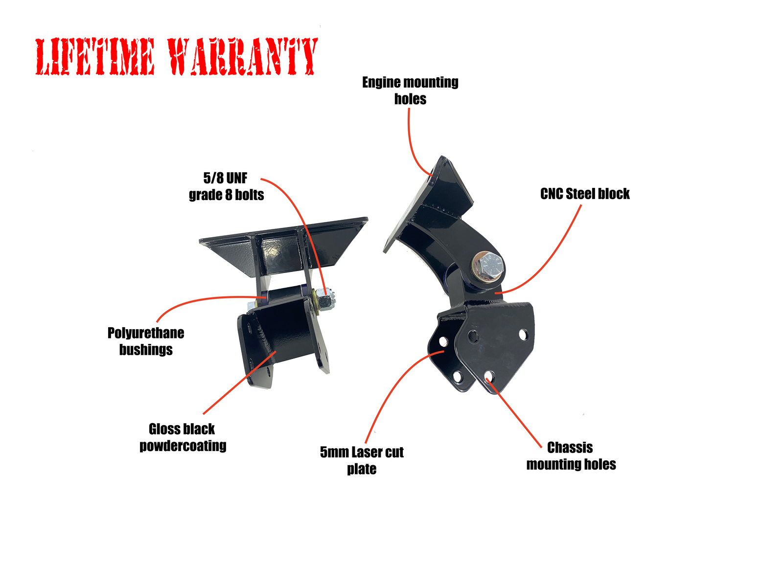 Engine Mounts (Heavy Duty) for Holden 253, 308 & 5Ltr EFI Engines into LC & LJ Holden Toranas