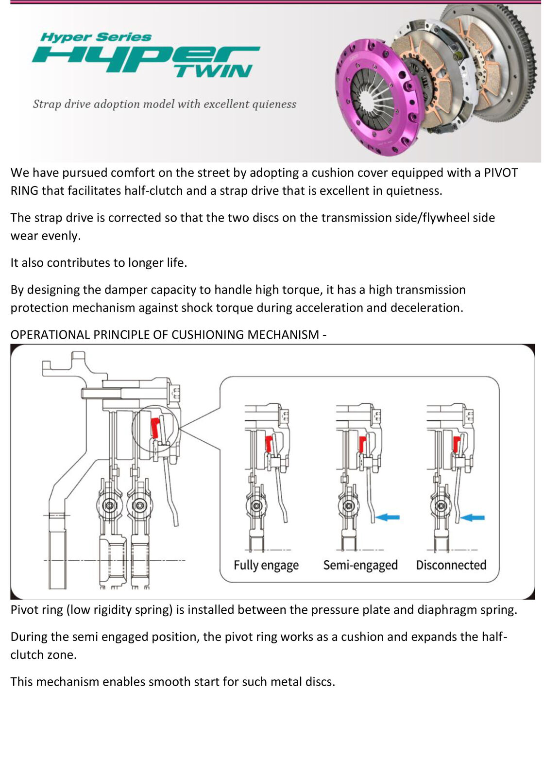 CLAMPING PRESSURE OF 1330 KGS AND HAS A TORQUE CAPACITY OF 1000 NEWTON METRES** AT THE FLYWHEEL - (**Exedy Safety factor)